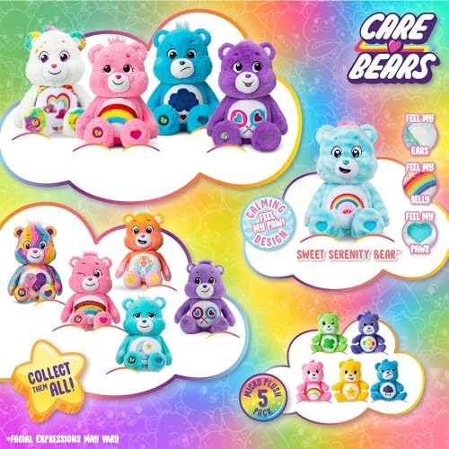 nan Key Features: SOFT, SNUGGABLE PLUSHIE: Made from sustainable materials and super soft, 14" Grumpy Bear's plush fur is so snuggable you'll never want to put your bestie down! Get ready for unlimited bear hugs!,PERFECTLY SIZED: Featured in a beautiful 14-inch plush scale, Grumpy Bear is the perfect size for taking on adventures of sharing and caring!,UNIQUE BELLY BADGE: Grumpy Bear wears a beautiful belly badge of a rain cloud with falling heartsA" reminding us that even when weAre less than cheery, we are still loved by those closest to us.,FUN PERSONALITY: Each Care Bear bestie is designed with their own unique personality; 14" Grumpy Bear may have a grumpy face, it is actually his happy face!,GREAT GIFT IDEA: Sharing is caring! Grumpy Bear and all of the Care Bears besties are perfect for any gift giving occasion!,Facial expressions and packaging may vary from the displayed images This product is designed with premium quality, ensuring durability and superior performance.