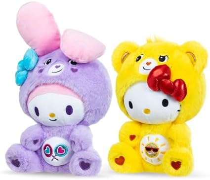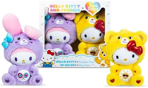 nan Key Features: Care Bears x Hello Kitty & Friends 2-Pack: The Care Bears x Hello Kitty & Friends 2-Pack brings your beary besties together in the ultimate sharing and caring collab Take home Hello Kitty as Funshine Bear and My Melody as Share Bear for unlimited bear hugs!,10A Plushies: These plush toys measure 10 inches tall, ideal for playtime, storytime, naptime, or fun on-the-go.,Unique Belly Badges: Hello Kitty as Funshine Bear wears a fun, sunny belly badge thatAs sure to put a smile on your face! And My Melody as Share Bears features two heart-shaped lollipops, reminding us to share our care with our friends.,Soft and Snuggly: These beary besties are so soft and snuggly, you wonAt want to put them down! Made with quality plush materials, kids and collectors alike will love these super soft plushies.,Share with a Friend: There's no one better than a Care Bears Beary Bestie to share your care! Keep both adorable besties for your Care Bears and Hello Kitty collections, or share one with a friend. This product is designed with premium quality, ensuring durability and superior performance.