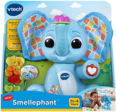 Product Description Get your super senses ready to explore with the Smellephanta! With her magical trunk and five fruit play pieces, this elephant teaches kids about using their five senses with engaging activities and interactive play. Place a play piece on the SmellephantaTMs magical trunk, and she will identify the fruit. See her silly ears flap forward to cover her eyes. She can even tell which fruit is on her trunk with her eyes covered. Peek-a-boo! The Smellephant sees you! Free Play mode lets kiddos explore colors, numbers, sight, smell, hearing, taste and touch. Key Features: Place a fruit play piece on the elephant's magical trunk and she will identify it; play peek-a-boo when she flaps her ears to cover her eyes,Free Play mode lets kids explore colors, numbers and the five senses: sight, sound, smell, taste and touch,Quiz mode encourages kids to use their five senses in a game; Music mode includes 12 sing-along songs and animal sound effects,Buttons on her feet add songs and animal sound effects to interactive play,Intended for ages 1.5a4 years; requires 4 A batteries; batteries included for demo purposes only; new batteries recommended for regular use This product is designed with premium quality, ensuring durability and superior performance.