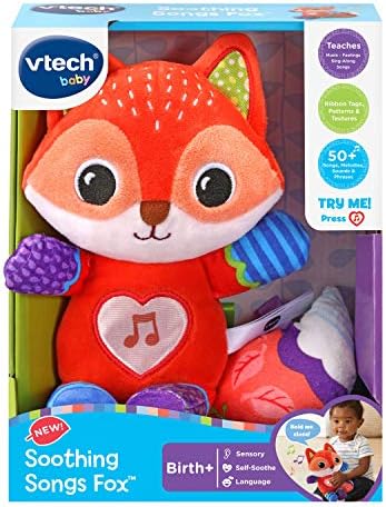 Product Description Cuddle up with the soothing sounds and soft lights of the big-hearted Soothing Songs Foxa. Softly glowing lights from the foxaTMs heart, nature sounds, melodies and lullabies all help babies learn to soothe themselves. When itaTMs time to play, encourage your little one to explore the patterns and textures on this woodland fox, including crinkly ears, a soft tail and body, ribbon tags and embroidery. Listening to 50+ songs, melodies, sounds and phrases about feelings helps your child develop language skills. ItaTMs time to snuggle with this musical, peaceful fox! Intended for ages Birth+. Key Features: Help your baby learn to self-soothe with songs and melodies including classical music, lullabies and popular kids' songs,FoxaTMs heart glows with a comforting soft light that fades in and out with the peaceful music, nature sounds and phrases,Stimulate your baby's sense of touch with crinkly ears, a soft tail and body, ribbon tags and embroidery,Peaceful songs and phrases about emotions encourage the development of language skills,Intended for ages Birth+; requires 1 AA battery; battery included for demo purposes only; new battery recommended for regular use This product is designed with premium quality, ensuring durability and superior performance.