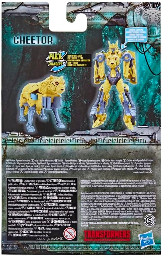 Product Description With Transformers Flex changers, you can switch to alt mode quickly like never before! Each figure features an Energon Flex band. Switch between modes by bending the robot toy! This Transformers Cheetor action figure transforms from robot to Transformers cheetah mode. FLEXIBLE TO CONVERT - This Cheetor toy can be transformed from robot to old mode and back in 5 quick steps! Bend, twist and fix the figure easily to switch between modes. Figure: approx. 15 cm tall. Warning: Choking hazard - small parts may occur. Key Features: With Transformers Flex changers, you can switch to alt mode quickly like never before!,Each figure features an Energon Flex band.,Switch between modes by bending the robot toy!,This Transformers Cheetor action figure transforms from robot to Transformers cheetah mode.,FLEXIBLE TO CONVERT - This Cheetor toy can be transformed from robot to old mode and back in 5 quick steps!,Bend, twist and fix the figure easily to switch between modes.,Figure: approx 15 cm tall This product is designed with premium quality, ensuring durability and superior performance.