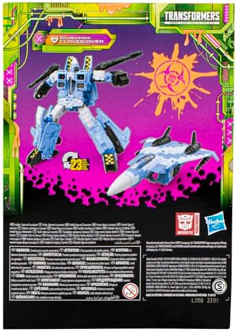 Product Description Transformers: Legacy Evolution G2 Universe Cloud Cover Action Figure, Unleash a storm of toxic destruction with the G2 Universe Cloud Cover action figure! This converting Transformers action figure for boys and girls is inspired by the original color designs from the G2 toy line in the 90s. The bright color scheme of this Transformers toy is sure to stand out in any fan's collection. This G2 Universe Cloud Cover toy makes a great gift for Transformers fans and collectors. Look for more Transformers Legacy toys to add to your collection (each sold separately, subject to availability). Key Features: 2 EPIC MODES: Transformers action figure for boys and girls converts from robot to jet mode in 23 steps,G2-INSPIRED DESIGNS: This G2 Universe Cloudcover action figure is an all-new character, with deco inspired by unreleased color designs from the original G2 toy line,CELEBRATE THE LEGACY: Transformers Legacy Evolution celebrates 40 years of Transformers history Collect different characters to create your ideal Legacy lineup (each sold separately, subject to availability),AWESOME ACCESSORIES: This G2 Universe Cloudcover toy for 8 year old boys and girls comes with 2 null ray accessories,TOXITRON COLLECTION: A collection of Transformers robots has risen out of the Toxic Sludge Swamps of Cybertron! Toxitron is unleashing radioactive mayhem with a team of toxic warriors This product is designed with premium quality, ensuring durability and superior performance.