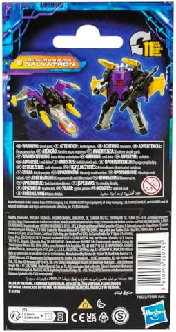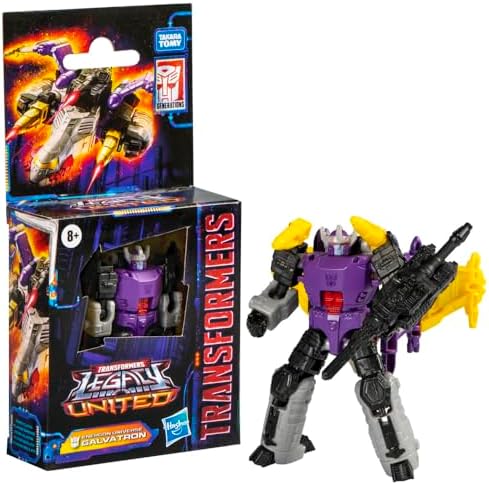 Product Description Unite your favorite characters from across the world of Transformers robots into your collection with the Transformers Legacy United Core Class Energon Universe Galvatron action figure! This 3.5-inch Energon Universe Galvatron action figure converts between robot and jet modes in 11 steps. Gear up for battle with the included cannon and blaster accessories that attach in both modes. The Energon Universe Galvatron figure is inspired by the character from the animated series, Transformers: Energon, and features articulated head, arms, and legs for awesome action poses. Key Features: ENERGON UNIVERSE GALVATRON ACTION FIGURE: This 3.5-inch (8.9 cm) Energon Universe Galvatron toy features deco and detail inspiration from the animated series, Transformers: Energon,2-IN-1 CONVERTING TRANSFORMERS TOY: Transformers action figure converts from robot toy to jet toy in 11 steps,AWESOME ACCESSORIES: This Energon Universe Galvatron Transformers figure comes with a blaster and shoulder cannon accessories Accessories attach in both modes,ARTICULATED FOR PLAY AND DISPLAY: Transformers figures feature articulated heads, arms, and legs for action poses,CELEBRATE THE LEGACY: Transformers Legacy United honors 40 years of Transformers animated history! Collect other Legacy: United figures to unite your collection (each sold separately, subject to availability),GIFT TRANSFORMERS COLLECTIBLES: This Energon Universe Galvatron action figure toy makes a great collectible figure gift for any Transformers fan This product is designed with premium quality, ensuring durability and superior performance.