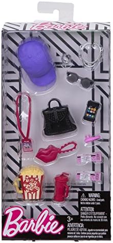 Product Description Barbie knows you can do anything! And she demands her wardrobe be just as versatile as she is. These accessory packs for Barbie doll (sold separately) offer unique twists on todayAs trends. Each includes 12 themed pieces to inspire storytelling, like a sunhat and camera for the sightseeing set, a bucket of popcorn and movie tickets for the move-themed pack and a book and backpack for the school spirit set. Mix and match the accessories with other clothing in the line to create different looks and explore your style. Key Features: Barbie doll (sold separately) demands her wardrobe be ready for any possibility!,These Barbie doll accessory packs offer unique twists on todayAs trends with 12 themed pieces in each.,Choose from classic themes, like sightseeing (with items like sunglasses and an ice cream cone), movie night (including pieces like a VIP pass and cell phone) and school spirit (making the grade with a team pennant and a pair of eyeglasses, among others).,Mix and match with other clothing in the line to spark imaginations and storytelling fun (each sold separately, subject to availability).,More variety makes collecting Barbie dolls and fashions even more fun -collect them all! This product is designed with premium quality, ensuring durability and superior performance.