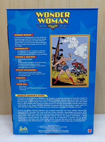 Product Description Product description This collector edition Wonder Woman Barbie has no time for Skipper, Ken, or the rest of the doll world. She's enormously busy fighting for peace, freedom, and truth in toyland. Yet, it's clear that style cannot go ignored. Sleekly attired in a blue silk cape over a red, gold, and blue tank suit, this superhuman doll heroine also sports a pair of very hip knee-high red satin boots. The costume is exactly like the one worn by actress Lynda Carter in the '70s series, Wonder Woman. Key Features: Barbie as Wonder Woman Doll Mattel Collector Edition,Includes: doll, bodysuit with attached lasso, cape, tights, fabric boots, headband, 2 bracelet cuffs, earrings, doll stand, Certificate of Authenticity,For the adult collector, age 14 and over This product is designed with premium quality, ensuring durability and superior performance.