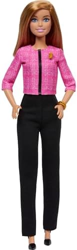 Product Description With Barbie Future Leader doll, kids can explore all kinds of leadership roles, all the way to the top! From campaign tales to election events to decision-making moments, Barbie doll is ready to inspire stories around leadership. She wears a polished pink and black outfit accessorized with two golden bracelets and 'B' pin. A kid-sized 'Future Leader' sticker lets kids role-play the campaign trail with Barbie. Imaginations can play out a world full of storytelling possibilities and career opportunities with this powerful doll, ready to inspire kids to be anything! Doll cannot stand alone. Key Features: Inspire young leaders with Barbie Future Leader doll!,Barbie doll is ready to take the lead in a pink blazer top and skirt or pant look, paired with two golden bracelets and 'B' pin!,Kids can play out a day on Barbie doll's campaign trail with the child-sized, wearable sticker for immersive fun!,Future Leader Barbie doll is full of storytelling possibilities to role-play female leadership!,Makes a great toy for kids 3 years old and up, especially our Future Leaders, who are ready for all opportunities. This product is designed with premium quality, ensuring durability and superior performance.