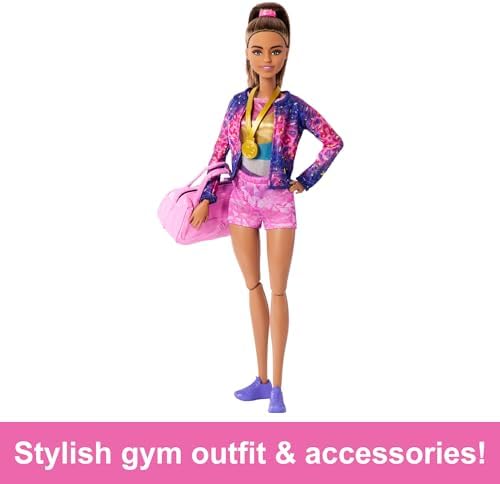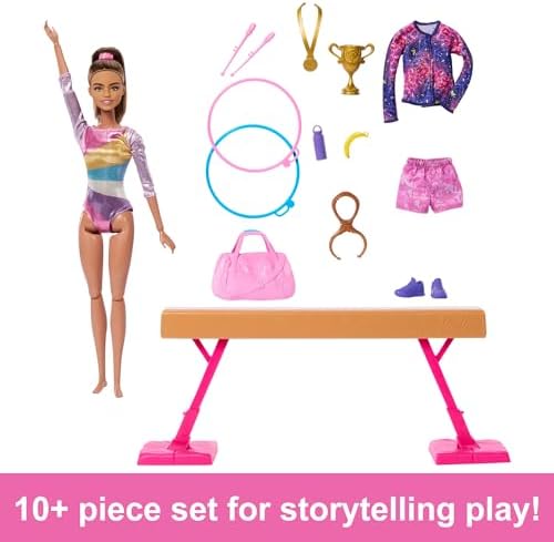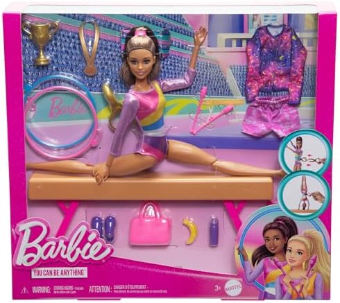 nan Key Features: Kids will flip out imagining a career in gymnastics with Barbie doll and her balance beam -- the playset includes 10+ themed pieces to inspire winning stories!,Snap Barbie doll's waist into the c-clip and use to help her perform cartwheels, flips, leaps and more!!,Dance a rockin' floor routine with a pair of hoops or batons -- they have handles so her hands can really hold them!!,Tell stories before and after routines with additional accessories that include a trophy, medal, water bottle and snack!!,Barbie gymnast doll wears a colorful iridescent leotard with her blonde hair in a ponytail and has a warm-up suit, sneakers and gym bag to let imaginations travel!!,With so many pieces to inspire dreams, this Barbie playset makes a great toy for kids 3 years and older, especially those who love sports and gymnastics! This product is designed with premium quality, ensuring durability and superior performance.