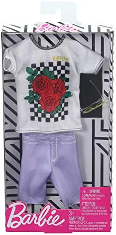 Product Description Ken doll needs a wardrobe that can keep up with everything he wants to do -he's always ready for a new experience, just like Barbie doll. These clothing sets for Ken doll (sold separately) add to his versatile wardrobe with a complete look: a top, a bottom and an accessory, like a pair of shoes. Mix and match with other doll clothes in the line to create different looks and explore style. Key Features: Expand the clothing and storytelling options for Ken doll (sold separately) with these fashion packs that feature a complete look: one top, one bottom and an accessory.,Kids will love this white-t-shirt with a rose graphic and "love" message.,The purple denim shorts are right on trend.,Circle eyeglasses add the finishing touch.,Mix and match with other Ken doll clothes and accessories to spark imaginations and storytelling fun (each sold separately, subject to availability).,More variety makes collecting Barbie and Ken dolls and fashions even more fun -collect them all! This product is designed with premium quality, ensuring durability and superior performance.