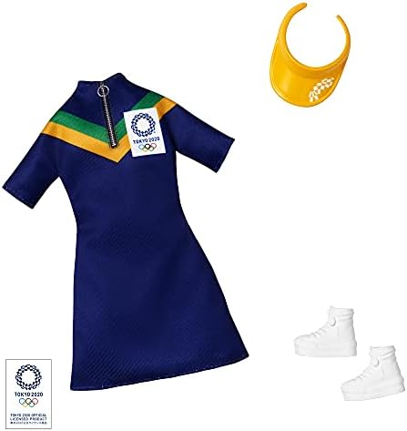 Product Description Barbie doll loves to put her own twist on the latest fashion trends (doll not included; sold separately, subject to availability). And she's captured some of her favorite influences in this cool collection of doll clothes. Each complete look -one outfit, plus accessories -incorporates recognizable icons inspired by the Olympics Games Tokyo 2020. Mix and match with other clothing in the line to explore all kinds of styles. Key Features: This trendy fashion pack for Barbie doll features an outfit and accessories inspired by the Olympic Games Tokyo 2020 (doll not included; sold separately, subject to availability)..,A blue dress is cool with 2 colorful chevron stripes and the Olympic Games Tokyo 2020 logo.,A branded visor and a pair of white sneakers complete the look with sporty touches.,Mix and match with other Barbie doll clothing to encourage imaginations and storytelling fun (each fashion pack sold separately, subject to availability).,Kids can collect them to expand Barbie doll's wardrobe and the possibilities for exploration because when a girl plays with Barbie, she imagines everything she can become (each fashion pack sold separately, subject to availability). This product is designed with premium quality, ensuring durability and superior performance.