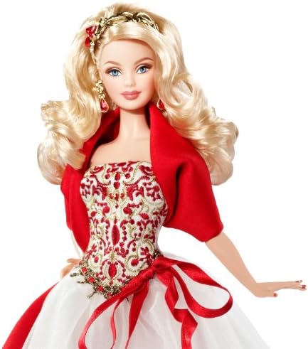 Product Description Amazon.com Celebrate the holiday season in style with the Barbie Collector 2010 Holiday Doll. Dressed in a snowy white gown with red and gold accents, Barbie is ready for winter wonderland festivities. Ideal for the adult collector but suitable for children six and up, this special-occasion Barbie's fabulous dress and accessories will give your collection a merry holiday touch.2010 Holiday Doll Ages: 6 years and up What We Think Fun factor: Durability: Novelty factor: The Good: Festive packaging and wonderful holiday attire The Challenging: Challenging: May not be as versatile if purchased as a toy. Key Features: This holiday season glows glamorous,2010 Holiday Barbie doll shines in her snowy white gown,Beautiful red and gold-studded bodice, extra-long red wrap, and ribbon bow,Magnificent head piece and chandelier earrings complete the look,For the Adult Collector This product is designed with premium quality, ensuring durability and superior performance.
