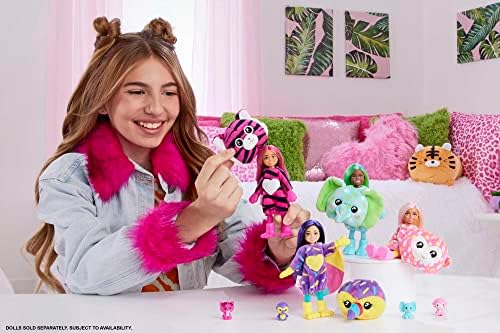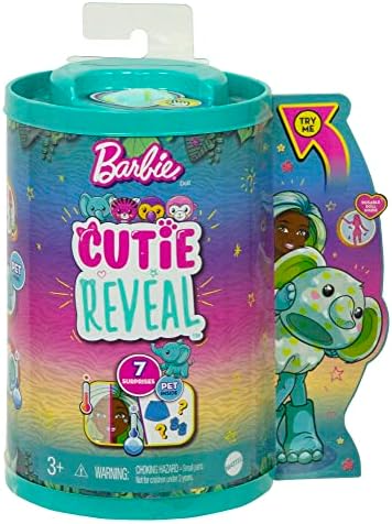 Product Description Barbie Cutie Reveal Jungle Series Chelsea dolls offer the cutest unboxing experience with seven surprises! Discover a charming baby Elephant, lovable Tiger cub, bright baby Toucan or cheeky baby Monkey, then remove the plush costume to reveal a posable Chelsea doll. Which doll will you reveal? Each small doll comes with twinkle-shine shapes on their face that add to the Cutie look. Go wild with more surprises like a skirt and mini pet that matches the doll's costume! Flip the plush top for an over-sized jacket and the costume head for a pet bed. Key Features: With 7 surprises in 1 package, Barbie Cutie Reveal Chelsea dolls deliver the cutest unboxing experience with plush Jungle Series animal friends, fashions and transforming fun!,Unbox to find a plush baby tiger with a Chelsea doll inside.,Lift the costume head and reveal a posable Chelsea doll with long color-streaked hair and twinkle-shine eye and face details.,Open the 3 surprise bags to find fashions and accessories -like a colorful animal-print, pair of shoes and adorable mini baby tiger.,Kids can dress and style Cutie Chelsea by flipping the costume top to find a super-soft, over-sized jacket with a cute fashion print The costume head turns into a bed for the baby animal, too!,Use icy cold water to transform Chelsea doll's face with twinkle-shine face paint and to "open and close" the baby tiger's eyes Change back with warm water Repeat again and again!,Chelsea Cutie Reveal Jungle Series dolls make a great gift for kids 3 to 7 years old, especially those who love discovering cute surprises! This product is designed with premium quality, ensuring durability and superior performance.