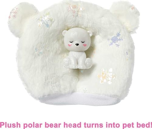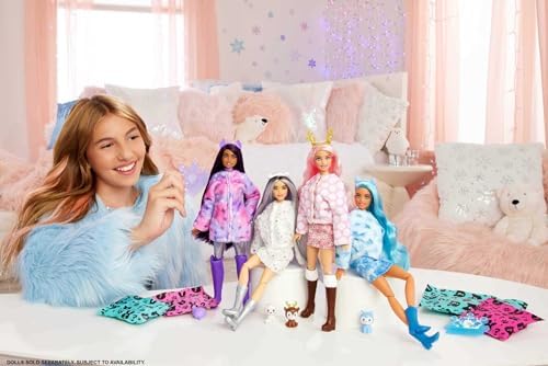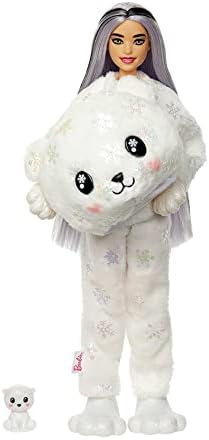 Product Description Barbie Cutie Reveal Snowflake Sparkle Series dolls offer the cutest unboxing experience with 10 surprises, including a posable Barbie doll! Unbox the package to find a soft, plush deer friend with golden foil antlers and four surprise bags. Remove the deer costume to find a Barbie doll with long pink hair and twinkle-shine details. Open the surprise bags to find a cute skirt, deer antler headband, sponge-comb and mini pet deer. Key Features: With 10 surprises in 1 box, the Snowflake Sparkle Series of Barbie Cutie Reveal dolls deliver the cutest unboxing experience with plush winter animal friends and fashions, surprises and transforming fun (each sold separately, subject to availability).,Find a soft, plush husky puppy with tinsel fur!,Lift the costume head to reveal a posable Barbie doll with long, colorful hair and twinkle-shine face details.,Open the 4 surprise bags to find clothes and accessories: a pink flower-print skirt, pair of golden boots, sponge-comb, deer-antler headband and mini pet deer!,Kids can dress and accessorize Barbie doll by reversing the costume top to find a super-soft fleece jacket with a polka dot print The costume head turns into a bed for the mini deer friend, too.,Surprises continue for color-change cuteness -- use icy cold water to transform Barbie doll's face with winter snowflake sparkle face paint and to 'open and close' the mini deer's eyes Change back with warm water Repeat again and again!,Barbie Cutie Reveal Snowflake Sparkle Series dolls make a great toy for kids 3 to 7 years old, especially those who love discovering cute surprises! This product is designed with premium quality, ensuring durability and superior performance.