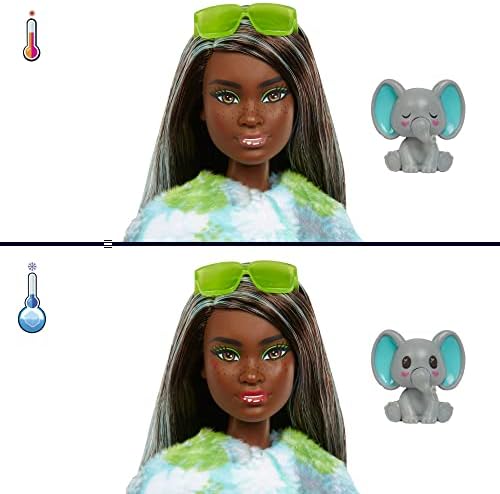 Product Description Barbie Cutie Reveal Jungle Series dolls offer the cutest unboxing experience with 10 surprises! Discover a charming Elephant, lovable Tiger, bright Toucan or cheeky Monkey, then remove the plush costume to reveal a posable Barbie doll with long, colorful hair. Which doll will you reveal? Each Barbie doll comes with twinkle-shine shapes on the face that add to the Cutie look. Go wild with more surprises to open like sunglasses, a skirt or shorts and a mini pet that matches the doll's costume. Key Features: Plastic,With 10 surprises in 1 package, Barbie Cutie Reveal Jungle Series dolls deliver the cutest unboxing experience with plush animal friends, fashions and transforming fun!,Unbox to find a cheeky, plush monkey with a Barbie doll inside Which doll will you reveal,Lift the costume head and reveal a posable Barbie doll with long, pink-streaked hair and twinkle-shine eye and face details.,Open the 4 surprise bags to find fashions and accessories -like cute shorts, a pair of shoes, sponge-comb, sunglasses and adorable matching mini monkey.,Kids can dress and style Barbie doll by reversing the costume top to find a super-soft fleece jacket with a banana print The costume head turns into a bed for the mini pet friend, too!,Use icy cold water to transform Barbie doll's face with jungle fun face paint and to "open and close" the mini pet's eyes Change back with warm water Repeat again and again!,Barbie Cutie Reveal Jungle Series dolls make a great gift for kids 3 to 7 years old, especially those who love discovering cute surprises! This product is designed with premium quality, ensuring durability and superior performance.
