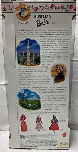 Product Description Product description Austrian Barbie Dolls of the World Collector Edition 1998 Amazon.com "GrAss Gott! (Greetings!) I'm Austrian Barbie and I live in Austria..." Although she doesn't really talk, this member of the 1999 Dolls of the World collection certainly looks real enough. Her long, curly blonde hair is tucked behind a woven headband and she wears just enough "makeup" to bring out her features. Austrian Barbie sports a floral-print dress with an off-white bodice and a rose-colored scarf with lace edging. Key Features: Edition: Collector Edition,Release Date: 1999,Barbie This product is designed with premium quality, ensuring durability and superior performance.