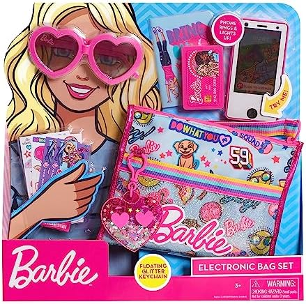 nan Key Features: Be a Barbie fashionista with the Barbie Electronic 10-Piece Purse Set! This trendy purse set features floating glitter and holographic vinyl The fashionable accessories are perfect for pretend play!,Set includes: a purse, cellphone, credit card, sunglasses, notebook and stickers, and a trapped glitter keychain charm.,Cell phone really lights up and rings!,Bag can fit all accessories inside.,Ages 3+ This product is designed with premium quality, ensuring durability and superior performance.