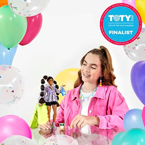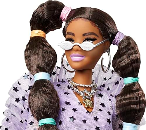 Product Description Barbie Extra dolls rock bold fashions and bright colors, and they make big statements! Each Barbie doll has their own unique style that's playful and over the top. And their pets -- each different and all adorable -- have tons of personality, too! Barbie Extra lets kids explore self-expression through style and offers an exciting fashion and styling play experience with posable dolls. They are all about having fun with fashion with glitter, gummy bears, emojis and stand-out hair -- bringing EXTRA vibes wherever they go. Each sold separately, subject to availability. Dolls cannot stand alone. Key Features: When it comes to fashion, Barbie Extra dolls have a 'more is more' attitude, featuring 15 pieces that include clothing and fashion accessories, as well as a pet and pet accessories.,Barbie doll is curvier than the original body, and her hairstyle goes big with long brunette pigtails styled with rainbow rubber hair bands.,A fun and playful look showcases her confident style with a star-print lavender ruffle top paired with black shorts with frayed edge and a neon, faux fur shrug.,Barbie doll's accessories -- a star-shaped bag, silvery boots, sunglasses and layered silvery jewelry -- add personal expression and unexpected moments of storytelling fun.,The pet Pomeranian puppy figure is oh-so-EXTRA, too, with oversized cat-eye sunglasses and a fruit drink! This product is designed with premium quality, ensuring durability and superior performance.