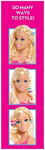 Product Description The Barbie Fashionistas Styling head is full of styling fun! Barbie's thick flowing hair is perfect for brushing, twisting, and pinning into trendy designs! Use the cute barrettes and hair ties to give Barbie a fancy up-do. Key Features: Includes: one Barbie Styling Head, three customizable barrettes, eight pop-in gems, three hair twists, hair bands and one brush.,Brush Barbie's hair with the cute pink brush!,Give Barbie fashionable up-dos with the hair ties, twists and barrettes!,Customize the barrettes with the fun pop-in charms!,Ages 3+A"A" This product is designed with premium quality, ensuring durability and superior performance.