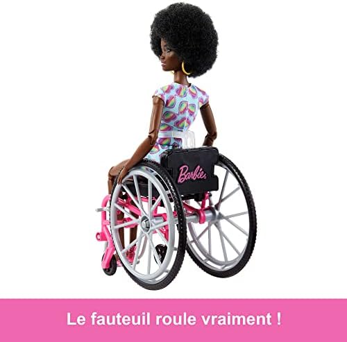 Product Description Barbie Fashionistas celebrate diversity and offer endless possibilities for storytelling and fashion exploration. With this inclusive range of dolls, kids can see how fun it is to express personality through style! They're an ideal gift for fashion-loving kids everywhere. Each sold separately, subject to availability. Dolls cannot stand alone. Key Features: A"Designed to reflect the world kids see today, this diverse line of Barbie Fashionistas showcases bright and trendy styles that make for endless storytelling possibilities.,A"Barbie doll sparks play potential with a manual hot pink wheelchair and an orange ramp that help her get easily in and out of the Barbie Dreamhouse (sold separately, subject to availability).,A"It's all about movement! This stylish doll has 22 articulation points for multiple posing and play options.,A"She has naturally curly black hair and wears a fun rainbow-heart romper with hoop earrings and pink sandals.A"A",A"More variety makes collecting Barbie Fashionistas dolls even more fun -- they're the perfect gift for kids 3 years and older! (Each sold separately, subject to availability).A"A" This product is designed with premium quality, ensuring durability and superior performance.