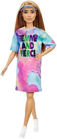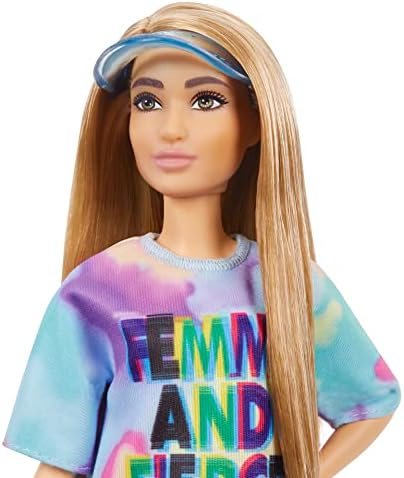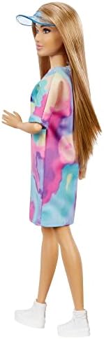 Barbie - Barbie Fashionistas Doll Petite with Light Brown Hair Wearing Tie-Dye T-Shirt Dress White Shoes & Visor Toy for Kids 3 to 8 Years Old