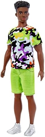 Product Description Barbie and Ken Fashionistas celebrate diversity with fashion dolls that encourage real-world storytelling and open-ended dreams! With a wide variety of skin tones, eye colors, hair colors and textures, body types and fashions, the dolls are designed to reflect the world kids see today -and their attention-grabbing outfits help them stand out with personalities that pop! Use the reusable vinyl package to fill, carry and customize -store Barbie fashions and accessories, carry a doll anywhere, even decorate it and use for self-expression! Kids can collect Barbie dolls and accessories for infinite ways to play out stories, express their Key Features: The Ken Fashionistas dolls stay cool with trendy looks and individual style.,Ken doll is broader than the original and wears a multi-colored camo print shirt paired with neon green shorts.,Silvery sneakers add the finishing touch for a hip, modern look.,Ken doll has sculpted black curly hair.,Designed with a zipper, the reusable vinyl bag can be used to store the doll or other Barbie fashions and accessories, and kids can customize it with their own art supplies, like stickers There are endless ways to play,Makes a great gift for kids 3 years and older -- they can play with style, play out stories and discover Barbie!,More variety can make collecting Ken and Barbie Fashionistas dolls even more fun -- kids can collect them to expand the possibilities (each sold separately, subject to availability).,Celebrate the Kencore fashion trend with the original inspiration. This product is designed with premium quality, ensuring durability and superior performance.