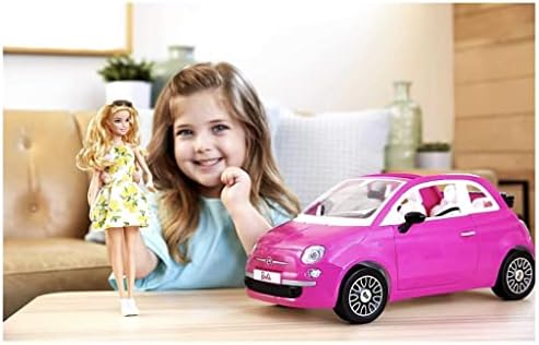 Product Description Barbie Fiat Refresh. Key Features: not known,A"Imaginations can explore the world with Barbie doll and her chic Fiat 500 Car!,A"This four-seater Barbie Fiat vehicle has working doors and wheels for active play and inspired storytelling.,A"A pink exterior, white interior, Barbie license plates and Fiat 500 emblems bring signature style and realistic detail to playtime.,A"Barbie doll is ready to hit the road in a trendy lemon print dress, white sneakers, a stylish bracelet and sunglasses.,A"This Barbie doll and Fiat 500 car playset makes a great gift for 3 to 7 year olds, especially those who love travel! This product is designed with premium quality, ensuring durability and superior performance.