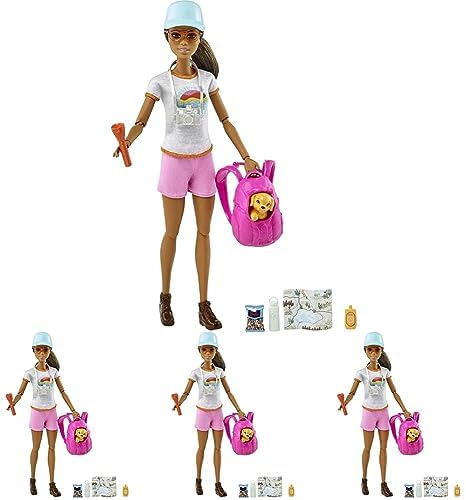 Product Description Barbie doll knows the way to be one's best is to give yourself the best care! This hiking-themed doll and accessory set celebrates one of her favorite ways to recharge -- it includes a doll, a puppy and nine themed toys that let kids play out a moment in nature hiking. Barbie doll wears a sporty look, and the many storytelling pieces encourage exploration and play. Some accessories have a handle Barbie doll can hold for easy role-play fun. Key Features: Kids can practice self-care as they help Barbie doll recharge with this hiking-themed set that includes a doll, a puppy and 9 accessories themed to a favorite experience outdoors!,Barbie doll can find the perfect spot, snap a scenic shot and stay safe with a map, water bottle, suntan lotion, snack, flashlight, cap, glasses, camera and backpack.,Puppy gets to enjoy, too -- it fits into the pink backpack so the two besties can hike together.,Some of the accessories have a handle Barbie doll can hold for easy storytelling and role-play fun.,The hiker doll features 11 'joints' for more realistic movement -- at the neck, shoulders, elbows, wrists, hips and knees -- and wears a sporty look with 'adventure vibes' t-shirt, pink shorts and brown hiking boots.,Kids 3 to 7 years old will love playing out stories with Barbie hiker doll and discovering how to be good to themselves, too -- they can collect other Barbie wellness dolls to expand the possibilities and explore the world through play! This product is designed with premium quality, ensuring durability and superior performance.