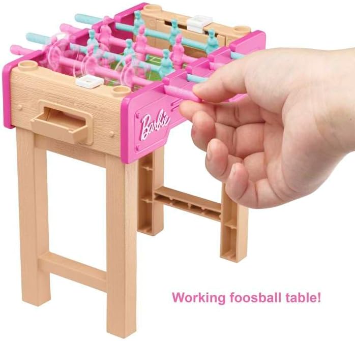 Barbie Mini Playset with Pet and Working Foosball Table Game Night Theme 3 to 7 Year Olds