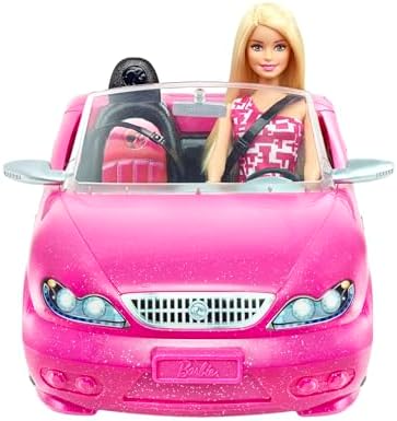Barbie - Barbie Playset with Sparkly Pink 2-Seater Toy Convertible Car Featuring Glam Details & Fashion Doll in Sundress & Sunglasses (Amazon Exclusive)