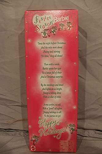 Product Description Special Edition Festive Season Barbie Doll is a 1997 Mattel production. Includes: 11.5" Barbie Doll with beautiful blonde hair and violet eyes. Doll wears a green w/ shimmery silver snowflakes pattern dress w/ white faux fur at the top, a pair of pink button Earrings & Finger Ring, a red ribbon at neck, & shoes. Comes w/ a red & white doll size Holiday Stocking w/ silver BARBIE printed on the white top & a Hair Brush. All details tot he best of my ability; colors, styles, sizes & info may vary. For Ages 3+ Years. Key Features: Special Edition Festive Season Barbie Doll is a 1997 Mattel production.,Includes: 11.5" Barbie Doll w/blond hair & green eyes, green Dress w/shimmery silver snowflakes & white faux fur trim, a red ribbon Necklace, & comes w/doll size Holiday Stocking w/silver BARBIE printed on white top, a pair of Shoes, & red Hairbrush.,All details to the best of my ability: colors, styles, sizes & info may vary PLEASE check in CONDITION NOTE/Comments for the Box Condition Info.,WARNING: Choking Hazard/Small Parts For Ages 3+ Years.,Special Edition Festive Season Barbie Doll is grea for any collection, as a gift or for fun play! This product is designed with premium quality, ensuring durability and superior performance.
