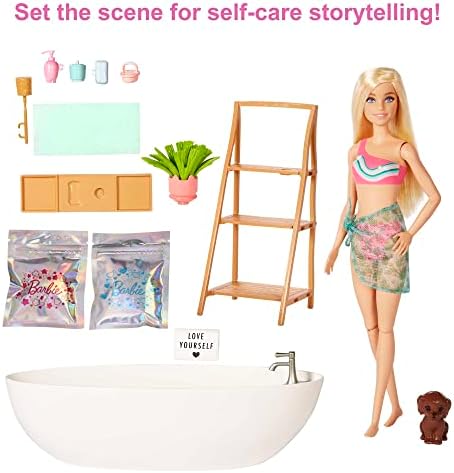 Product Description Summary:Young fans can create bigtime galactic adventures with the Imaginext STAR WARS R2-D2 toy from Fisher-Price.Standing over 17 inches tall, this interactive toy features cool lights and sounds, a hidden projectile launcher, pretend spinning blade, and lots of awesome kid-controlled action. Key Features: Whats more peaceful than a luxurious bath? This Barbie Confetti Bathtub and Doll Playset is Barbie doll's favorite -- and most colorful -- way to relax,Barbie doll is bendable and posable with 7 points of articulation for realistic play She has straight blonde hair and comes dressed in a swimsuit with a sheer sarong,Two bags of confetti soap are included (pink and blue) which change the bath water the same color -- so cool The bags are resealable for future use,There's enough confetti soap for repeat play Kids can get creative and experiment by mixing the two color bags to create purple,Barbie doll has everything needed for a relaxing soak in the tub: a bathtub and bath tray, shelving unit, towel, large brush, small brush, lotion bottle, soap, plant, candle, sign and puppy This product is designed with premium quality, ensuring durability and superior performance.