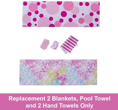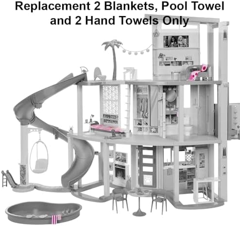 Product Description WhataTMs included? Replacement Soft Goods - 2 Blankets, Pool Towel and 2 Hand Towels. Key Features: Genuine Replacement Parts,Includes 2 Blankets, 1 Pool Towel and 2 Hand Towels,Perfect Shape and Fitting for your Barbie Dreamhouse,Replacement Parts come in a sealed plastic bag - as received from Manufacturer,Made for Model # HMX10 - Barbie Dreamhouse This product is designed with premium quality, ensuring durability and superior performance.