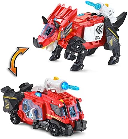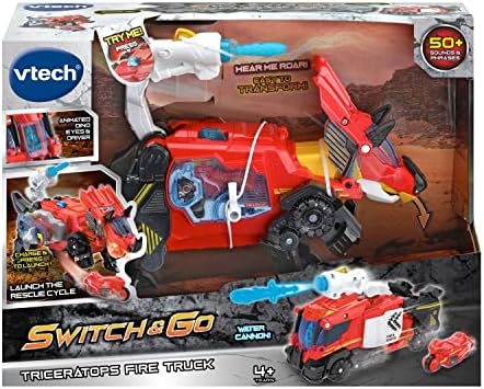 Product Description Roll out with the Switch and Go Triceratops Fire Truck! Easily transform the ferocious Triceratops into a blazing-fast fire truck that features lights, phrases and an animated firefighter. Fire the water cannon to get the flames under control. LetaTMs see what this engine can do! Now switch things up and transform the fire truck back into a dino with intense animated eyes. Where thereaTMs smoke thereaTMs fire! Launch the rescue cycle to check it out, then help the Triceratops stomp out the fire. Awesome action sounds, phrases and digital effects inspire adventure. Intended for ages 4+ years. Key Features: RollinaTM out, itaTMs mission time; easily transform the Triceratops with massive horns into a blazing-fast fire truck,Fire the water cannon to get the flames under control or launch the rescue cycle from the Triceratops,Heat up imagination with the talking Triceratops with intense animated eyes or transform into a blazing-fast fire truck with a brave animated firefighter,Awesome action sounds, phrases and pretend water cannon encourage play and adventure with transforming action figures,Intended for ages 4+ years; requires 2 A batteries; batteries included for demo purposes only; new batteries recommended for regular use This product is designed with premium quality, ensuring durability and superior performance.