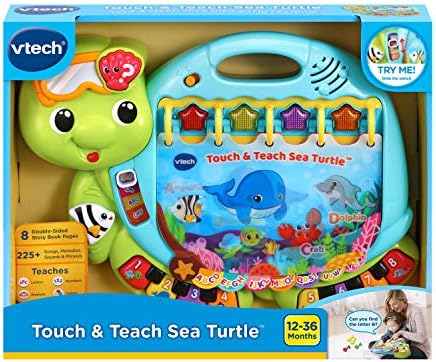 Product Description Dive into early reading with your toddler in the Touch and Teach Sea Turtle interactive story book. A holographic cover, bright colors and light-up buttons draw and hold your little one's attention on eight double-sided book pages. Sea creatures fill this deep-sea story with learning experiences focused on letters, numbers, colors and animals with three learning modes. Press the piano key buttons on each page to hear the names of a variety of sea animals, listen to their sounds and practice counting. Key Features: Go on a deep-sea adventure with the sea turtle and meet his animal friends; discover treasures along with animal sounds and fun facts,Build vocabulary with words about sea creatures, weather, letters, numbers and colors in Explore and Letter modes,Eight piano keys play piano notes and teach the music scale in Music mode,Every interactive page in this take-along book offers multiple ways to take a deep dive into learning with 225+ songs, melodies, sounds and phrases,Intended for ages 12-36 months; requires 2 A batteries; batteries included for demo purposes only; new batteries recommended for regular use This product is designed with premium quality, ensuring durability and superior performance.