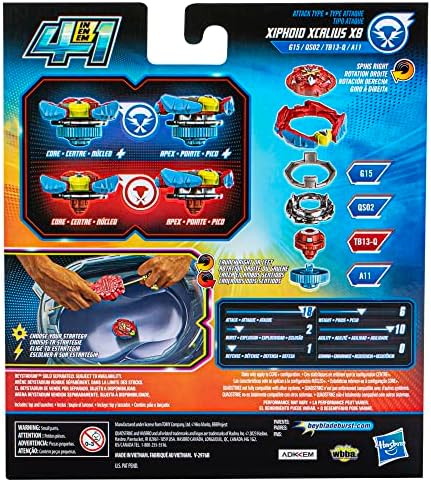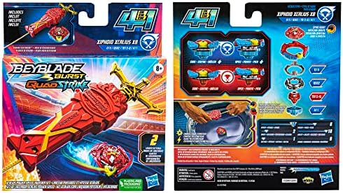 Product Description Beyblade Burst QuadStrike Xcalius Power Speed Launcher Pack launches you to the next stage of Beyblade battling with spinning top and launcher toy sets for 8-year-old boys and girls. QuadStrike tops are enhanced with upgraded Armor Tips designed to take down opponents with more intense clashes. Configure the top in 4 different ways to give you 4 ways to strategize and customize, 4 modes to battle, and 4 modes to win! The Xcalius Power Speed Launcher Pack includes 1 Xcalius Power Speed Launcher and 1 right-spin top: Xiphoid Xcalius X8 G15 QS02 TB13-Q A11. Key Features: XCALIUS POWER SPEED LAUNCHER: Choose between 2 launch settings: power or speed! Beyblade left/right-spin launcher features a sword-like design with an easy-to-hold grip that makes for more powerful and consistent launches!,4 WAYS TO PLAY: Configure spinning top in 4 different ways to give you 4 ways to strategize, 4 ways to customize, 4 modes to battle, and 4 modes to win!,BEYBLADE BURST COMPETITIVE BATTLING TOP: Includes right-spin Beyblade Burst QuadStrike Xiphoid Xcalius X8 G15 QS02 TB13-Q A11 top Customize top to Core and Apex mode for balance type or to Core+ and Apex+ mode for attack type,STRIKE TOWARDS VICTORY: Build the best configuration and harness the power of advanced QuadStrike tech in the QuadStrike Beystadium (Beystadium required Sold separately, subject to availability),COMPETE IN DIGITAL BATTLES: Scan code on QuadStrike tops to take the battle to the next level! Compete in the Beyblade Burst app to unleash your top in a virtual battle with other Bladers worldwide! This product is designed with premium quality, ensuring durability and superior performance.