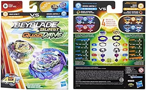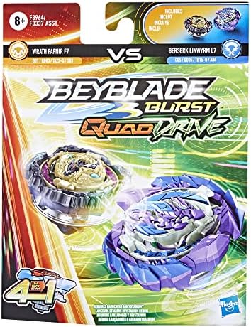Product Description Beyblade QuadDrive tech puts the future of Beyblade battling in your hands with the first ever 4-in-1 top! Each QuadDrive top can be configured in 4 different ways, giving you 4 ways to strategize, 4 ways to customize, 4 modes to battle, and 4 modes to win! Modify your QuadDrive top to gain the ultimate battle advantage. Train to become champion of the arena with the left-spin Wrath Fafnir F7 G01 QD03 TA23-Q S03 (stamina/attack type) and right-spin Berserk Linwyrm L7 G05 QD05 TB15-Q A04 (attack/balance type) tops. Key Features: HARNESS THE POWER OF QUADDRIVE: Beyblade Burst QuadDrive launches you into the future of Beyblade with the first ever 4-in-1 top! Tops can be configured in 4 ways, letting you customize tops like never before!,2 CUSTOMIZABLE TOPS: Includes Beyblade Burst QuadDrive left-spin Wrath Fafnir F7 G01 QD03 TA23-Q S03 and right-spin Berserk Linwyrm L7 G05 QD05 TB15-Q A04 tops Customize to Core and Apex mode, then Core+ and Apex+ mode to change top type,DRIVE TOWARDS VICTORY: Build the best configuration for battle in the QuadDrive Beystadium (Beystadium and launchers sold separately, subject to availability),COMPETE IN DIGITAL BATTLES: Scan code on QuadDrive tops to take the battle to the next level! Compete in the Beyblade Burst app to unleash your top in a virtual battle with other Bladers worldwide!,LET IT RIP: Launch into head-to-head battles with Beyblade Burst Beystadiums, launchers, and spinning tops as you journey towards Beymastery! (Each sold separately, subject to availability) This product is designed with premium quality, ensuring durability and superior performance.