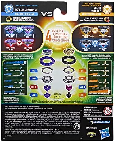 Beyblade Hasbro Hasbro Burst QuadDrive Wrath Fafnir F7 and Berserk Linwyrm L7 Spinning Top Dual Pack - 2 Battling Game Top Toy for Kids Ages 8 and Up