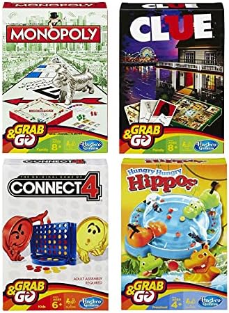 Product Description Hasbro Family Grab and Go Variety Pack Bundle: Clue, Monopoly, Connect 4 and Hungry Hungry Hippos Travel sized Board Games (4 Items) Key Features: 4 pack of Games include Clue, Monopoly, Connect4, and Hungry Hungry Hippo,Grab & Go games are a compact mobile version of the originals,All-in-one game unit's makes storage easy,Great on road trips, flights, and vacations too! This product is designed with premium quality, ensuring durability and superior performance.