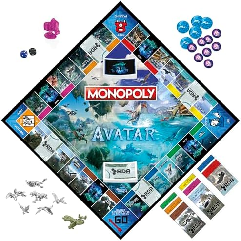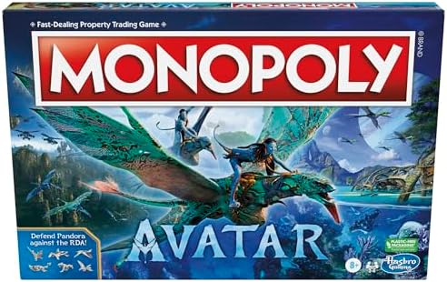 nan Key Features: MONOPOLY GAME: AVATAR EDITION: Defend Pandora against the evil RD! This Avatar edition of the Monopoly board game features themes, artwork, and game components inspired by the hit franchise,JOURNEY TO PANDOR: In this game, properties are Pandoran locations, and woodsprites replace Monopoly money Players try to connect to the most locations and protect as many as they can from the RDAJOURNEY TO PANDOR: In this game, properties are Pandoran locations, and woodsprites replace Monopoly money Players try to connect to the most locations and protect as many as they can from the RD,6 ZINC MONOPOLY TOKENS: Play as a Na'vi clan member, and choose from 6 tokens representing Pandora's wildlife: Ilu, Skimwing, Thanator, Tulkun, Banshee, and Leonopteryx,CONNECT TO THE LAND: Travel to a location on the board, connect to the land, and protect it with a NaaTMvi Spirit Tree to earn woodsprites The player with the most woodsprites at the end of the game wins,GUARD PANDOR FROM RD SCORPION: Watch out for the RD Scorpion traveling the board! If it lands on a location not protected by a Na'vi Spirit Tree, flip that Location card RD-side up to show they've taken itGUARD PANDOR FROM RD SCORPION: Watch out for the RD Scorpion traveling the board! If it lands on a location not protected by a Na'vi Spirit Tree, flip that Location card RD-side up to show they've taken it,GAME FOR AVATAR FANS: The Monopoly: Avatar board game is a fun choice for Family Game Night, and it makes a wonderful gift for kids ages 8 and up, families, and Avatar fans This product is designed with premium quality, ensuring durability and superior performance.