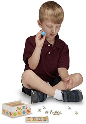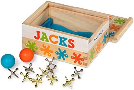 Product Description The traditional game of jacks has gotten a fresh makeover! Scatter the jacks, bounce a ball, and try to collect the correct number of jacks and the ball in one hand before the ball bounces twice. When playtime is over, cleanup is easy. The 10 gold- and silver-colored metal jacks and two bouncy balls store in a tie-top pouch that fits in the beautifully crafted wooden box with lid. Not only is this fun to play, but the storage box is also pretty enough to display. Key Features: Traditional game of jacks for kids in wooden storage box,Includes 5 gold-colored and 5 silver-colored metal jacks, 2 bouncy balls, storage pouch, wooden storage box with lid, detailed game instructions, and challenging variations,Fresh, modern, fine-crafted wooden storage case is pretty enough to display; coordinates with other Melissa & Doug classic wooden games,Great game for a single or more than one player; encourages fine motor development and hand-eye coordination,Makes a great gift for 6- to 12-year-olds, for hands-on, screen-free play This product is designed with premium quality, ensuring durability and superior performance.