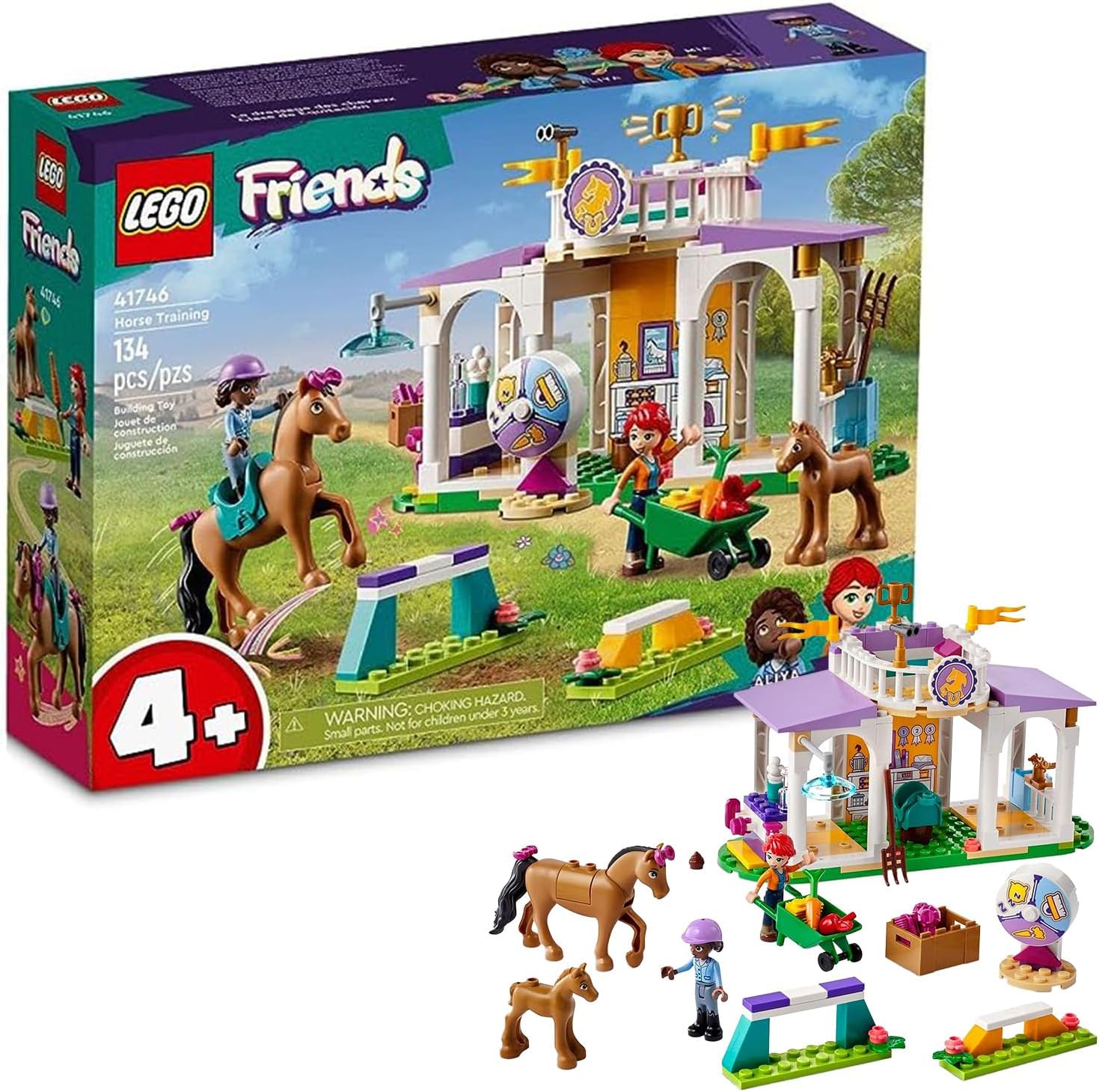 LEGO Friends Horse Training (41746) " Toddler Toy with 2 Mini-Dolls, Stable, Horses & Animal Care AccessoriesIntroduce your toddler to the world of horse care with the LEGO Friends Horse Training (41746) set, designed for kids ages 4 and up. This fun and educational playset encourages imaginative role play while helping young builders develop their creativity and motor skills. Horse Care Fun " Build a toy horse stable complete with accessories like hay, a saddle, a rake, and more to teach kids about horse care Mini-Dolls & Animals " Includes 2 mini-dolls, Aliya and Mia, plus horse and foal characters, allowing for endless imaginative adventures Animal Care Accessories " Features a range of accessories such as jumps, a trophy, shampoo, an apple, carrots, and even horse poop for realistic play Great Gift Idea " A perfect gift for birthdays, holidays, or any occasion for toddlers who love animals, horses, and creative play Easy Building " With a Starter Brick and intuitive instructions from the LEGO Builder app, kids can confidently build the stable and accessories Interactive Play " The stable measures over 4.5" (12 cm) high, 7.5" (19 cm) wide, and 4.5" (11 cm) deep, making it ideal for small hands to interact with LEGO Friends Universe " Part of the LEGO Friends series, where kids can create stories, build friendships, and explore the exciting world of Heartlake City The LEGO Friends Horse Training set provides an engaging and educational experience for young builders, helping them develop important skills while having fun with horses and animal care.