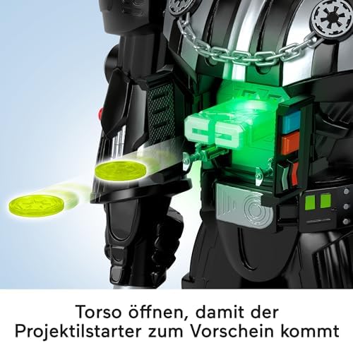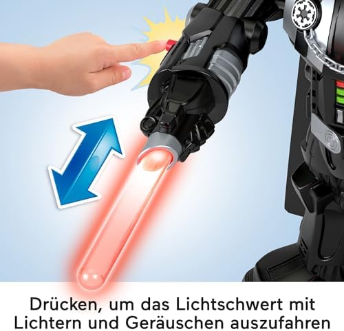 Product Description Young fans can bring the Galactic Empires most notorious military commander to life with awesome action-packed pretend play with the Imaginext STAR WARS Darth Vader Bot from Fisher-Price. Towering at over 2 feet tall, this interactive Darth Vader robot is packed with kid-controlled action, including a pop-out disc launcher, extendable Lightsaber accessory and a Force-inspired ball launcher, plus cool lights and familiar character sounds. Kids will love creating their own intergalactic adventures with this iconic STAR WARS villain. Includes 3-inch stormtrooper diecast character key toy and 7 projectiles for storytelling play. Requires 4 AA (LR6) alkaline batteries. Key Features: Kids can bring the iconic STAR WARS villain Darth Vader to life for bigtime pretend play with this 2+ foot tall robot with cool lights, sounds and kid-controlled action,Place stormtrooper diecast character key on shoulder Power Pad & turn for lights, sounds, and to open the botAs torso & reveal a hidden disc launcher,Right arm has extendable Lightsaber accessory with fun lights & sounds; left arm opens fist to launch a projectile ball,Inspired by the STAR WARS character with fabric cape & iconic breathing sounds; includes 3-inch stormtrooper diecast metal character key, 1 projectile ball & 6 projectile discs,Encourages imaginative play and storytelling for preschool kids ages 3 to 8 years old This product is designed with premium quality, ensuring durability and superior performance.