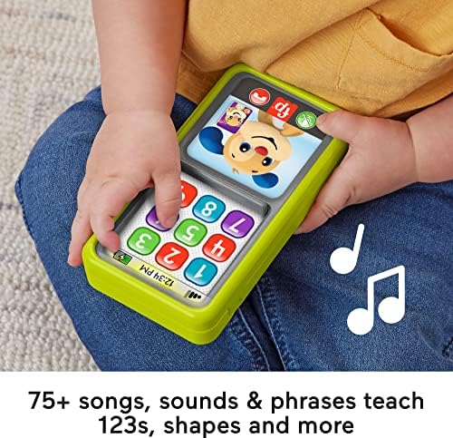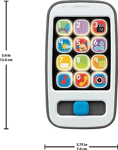Product Description Swipe up for learning fun with the Laugh & Learn 2-in-1 Slide to Learn Smartphone toy from Fisher-Price. This interactive toy phone looks like the real thing and features your babyAs Laugh & Learn friends, Puppy and Sis, plus two learning modes with AappA and number buttons to press to activate lights, songs and sounds. Key Features: Interactive toy smartphone with Laugh & Learn pals, Puppy and Sis, plus fun lights, sounds, and learning songs,75+ songs, sounds and phrases teach the numbers and counting, shapes, colors, feelings and weather,2 learning modes: Press number buttons 1-9 for lights and songs Slide the tab up to reveal 9 AappA buttons with fresh songs and phrases,Press the camera button for fun sounds and phrases, plus toggle the button on the side for clicking sounds,Helps develop fine motor skills and encourages role-play for infants and toddlers ages 9-36 months This product is designed with premium quality, ensuring durability and superior performance.