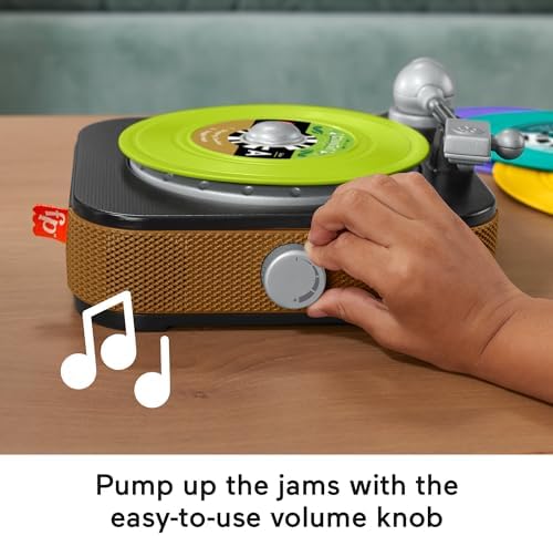 Product Description Preschool kids can turn the tables on fun with the Rockin Record Player musical toy from Fisher-Price. Young DJs will love picking out songs to play from the 5 colorful, double-sided ArecordsA that play 20 unique songs. Just like the real thing, kids can place the playerAs arm and see the record spin on the turntable as it plays! Records come in fun, decorative sleeves that can be stored in the included play rack. (Toy record player does not play real records. Key Features: Toy record player with a rotating turntable lets kids rock out to music in a fun, retro way,20 unique songs in 5 cool musical styles! Choose from Country, Pop, Mindfulness, Kids Classics & Hip-Hop,Kids control the play: Place the record arm into the groove to hear songs; use the knob to adjust the volume,Includes 1 turntable, 1 display rack, 5 records with decorative sleeves,Encourages self-confidence and pretend play for preschool kids ages 3 years & older,Smilestones: Bringing a smile to milestones! This toy fosters Independence by letting kids customize their listening experience & encouraging self-regulation through open-ended play This product is designed with premium quality, ensuring durability and superior performance.