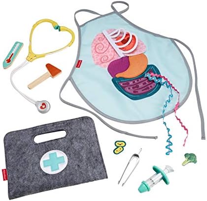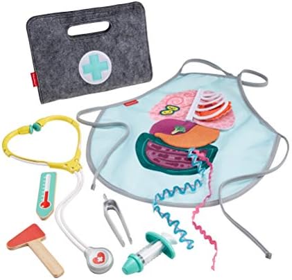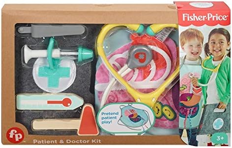 Product Description The Fisher-Price Patient and Doctor Set lets kids go from patient to doctor and back again for endless pretend play appointments! The fabric doctor bag is equipped with all the cool tools of the trade, like a pretend syringe, thermometer, and more, featuring smooth wood accents. Key Features: All the tools kids 3 years and older need for doctor-patient pretend play,Soft doctor bag holds stethoscope, kid-friendly syringe, thermometer, tweezers and reflex hammer,Fabric patient apron with pull-out guts, attachable cold bug, and broccoli piece,Real wood accents, metallic finish, and rubber tubing on pretend doctor tools,Gift-ready package is perfect for storage, too! This product is designed with premium quality, ensuring durability and superior performance.