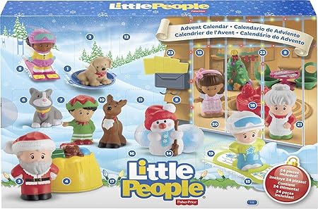 Fisher-Price Little People Advent Calendar A" Toddler Toys for Holiday Countdown Exciting Countdown to Christmas: This Advent Calendar makes the holiday season extra special by allowing little ones to open a door every day from December 1st to 24th, revealing a new Little People figure or holiday-themed accessory. Holiday Fun & Learning: Each door brings a new surprise, helping children get excited for Christmas while practicing counting and number recognition in a fun and engaging way. Perfect for Toddlers & Preschoolers: Designed for children ages 1-5 years, the set includes 24 Little People friends and festive accessories, offering endless opportunities for imaginative holiday play. Create Holiday Traditions: The Little People Advent Calendar is a wonderful way to introduce your little one to the tradition of Advent while adding fun and excitement to the days leading up to Christmas. Great Gift Idea: This countdown calendar makes a thoughtful and interactive gift that can be enjoyed throughout the holiday season, bringing joy and learning to toddlers and preschoolers. A delightful way to celebrate the season, the Fisher-Price Little People Advent Calendar combines holiday cheer with educational play, making every day of December leading up to Christmas a little more magical!
