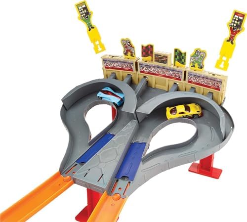 Product Description On the Hot Wheels Super Speed Blastway, kids race their Hot Wheels cars around a track to pop off flags and secure victory. Drivers launch cars toward the grandstands, releasing the flags that count toward the score. The set comes with 1 Hot Wheels vehicle to start racing right out of the box; challenge a friend to do head-to-head battle on the dual tracks. (Additional cars sold separately.) Connect this set to others for extended excitement and extra stunting action. Key Features: Engage in thrilling, high-speed action with the side-by-side racing of the Hot Wheels Super Speed Blastway!,Two kid-activated launchers get the race started sending toy cars toward a grandstand that has pop-off flags for each completed lap Score first and score fast to be the winner.,Set comes with 1 Hot Wheels vehicle and can be played with single or two players (Additional cars sold separately.),Connect the track to other Hot Wheels track sets to extend the racing adventures.,Kids 4 to 10 years old will love the competitive excitement and challenge of this track set that hones problem-solving skills and encourages good sportsmanship. This product is designed with premium quality, ensuring durability and superior performance.