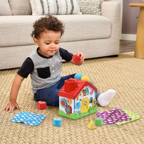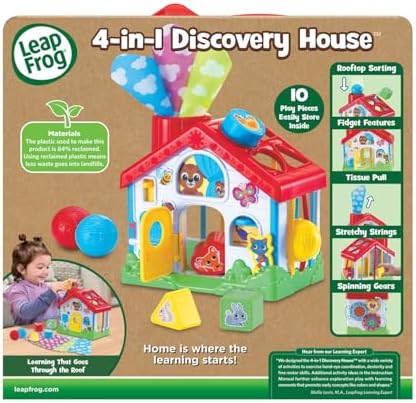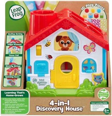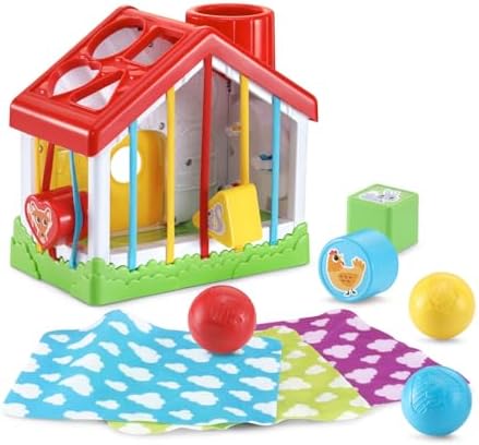 Product Description Home is where the learning starts! LetaTMs take a tour of this hands-on non-electronic toy house for babies and infants. Check for mail, flip the switch up and down, open and close the door or window, and giggle as the cat pops up from the bushes. Head to the side of the house and make a butterfly friend on the spinning gears. Key Features: Welcome home! Take a tour and open the window, door and mailbox, flip the switch, press the cat or spin the gears,Stretchy bands on the side and back provide an open concept to explore and store blocks, balls and tissues,Match the four shape blocks to their slots to make playtime go through the roof,Pull the tissues out of the chimney or drop the balls down into the house,Intended for ages 6+ months; batteries not required This product is designed with premium quality, ensuring durability and superior performance.