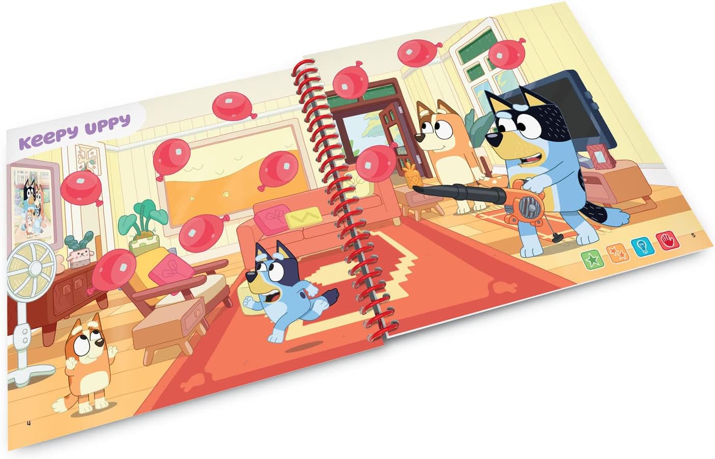 LeapFrog LeapStart Bluey Fun and Games " Interactive Learning Toy Play games from popular Bluey episodes with this fun activity book, including matching Bluey's poses, using the magic asparagus, enjoying Keepy Uppy, and more. Join Bluey and her family in 15+ exciting, replayable activities that engage children in learning through play. The set also includes 20 stickers for additional interactive fun. Tap on the words and pictures with the stylus to activate educational audio activities, encouraging hands-on learning. The activities adjust to keep kids engaged and learning at their individual level, making every discovery fun and rewarding. A computer with internet is needed to download the audio to the LeapStart system (sold separately). This toy is intended for children aged 2-5 years and does not require batteries.