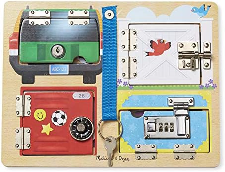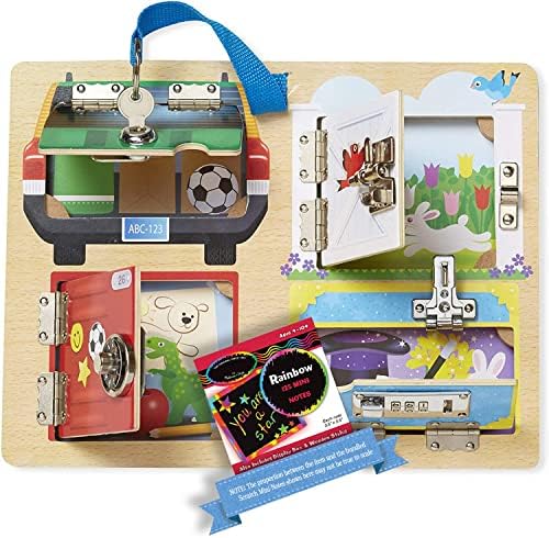 Product Description Unlock, unlatch, open the hinged panels, and count on finding fun when the pictures beneath are revealed! Kids will delight in discovering what's hiding behind the locked and latched panels on this wooden play board and educational toy in one. They can seek out a specific picture ("Where is the dinosaur?") or tell a story inspired by what they find ("The magic bunny just jumped out of the hat . . ."). Key Features: ONE MelisaSsaSa & DouaSg Scratch Fun Mini-Pad is bundled with this item The style of the mini-pad you receive is randomly picked If you return this item, please return it as well.,Skills activity featuring doors to open, close, and explore,Each door fastens with a different lock or latch,Highlights familiar places and intriguing scenes; Sturdy wooden board with metal hardware and hinges,Builds fine motor skills, hand-eye coordination, and imaginative play. This product is designed with premium quality, ensuring durability and superior performance.