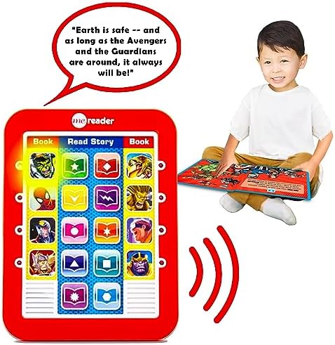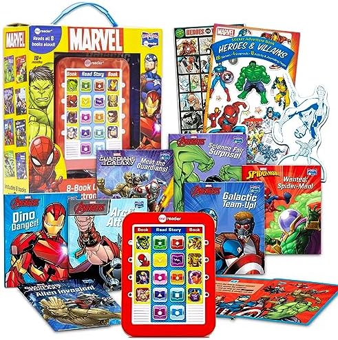 Product Description Marvel Superheroes Me Reader Electronic Reader 8 Book Bundle ~ Marvel Avengers Books For Toddlers, Kids Featuring Iron Man, Hulk, Spiderman, And More With Stickers (Marvel Learning Toys). This Marvel Superheroes Me Reader book set includes 8 unique superhero books for toddlers and kids as well as 1 Marvel Me Reader module. Marvel Me Reader module reads included books aloud at the press of the button. Perfect for kids and toddlers learning to read, this Avengers superhero book set lets boys and girls alike discover the joy of reading. Key Features: Marvel Superheroes Me Reader Electronic Reader 8 Book Bundle ~ Marvel Avengers Books For Toddlers, Kids Featuring Iron Man, Hulk, Spiderman, And More With Stickers (Marvel Learning Toys).,This Marvel Superheroes Me Reader book set includes 8 unique superhero books for toddlers and kids as well as 1 Marvel Me Reader module.,Marvel Me Reader module reads included books aloud at the press of the button Perfect for kids and toddlers learning to read, this Avengers superhero book set lets boys and girls alike discover the joy of reading.,Ideal in a Avengers gift set or as superhero party favors, the Marvel book collection with Marvel Me Reader electronic reader will provide hours of entertainment and learning for kids.,Officially licensed Marvel learning toys The Marvel Me Reader 8 book set also comes with bonus Marvel superhero stickers. This product is designed with premium quality, ensuring durability and superior performance.